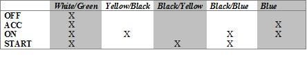 ON: W/G + Yellow/Black + Black/Blue + Blue