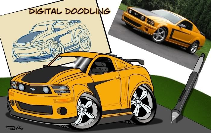 The blue Shelby is an example where I scan in my best pencil drawing to the bottom layer