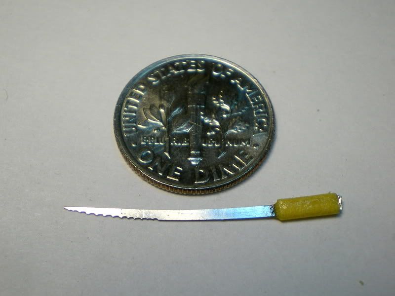 Check out my slot scimitar:naughty: It was proving rather difficult to make the belt slots without this. It's tip is much finer than the smallest fret saw blade I could find. I start with a very small drill (#75 or whatever) and work it into a slot with the scimitar. The handle is masking tape dipped in thick CA.