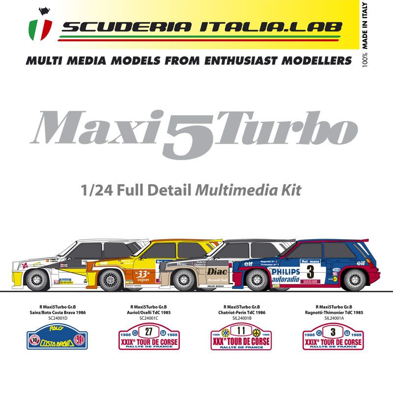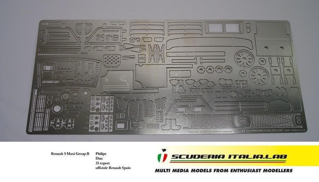 Hi guys, I'm more than happy to announce that our first kit, the R5 Maxi Group B, is ready for sale. Like we said in previous threads it's a full detail kit, with houndreds resin and white metal parts, a wide PE sheet, Cartograf decals. 4 versions are avaiable, with different decals and parts like rims.