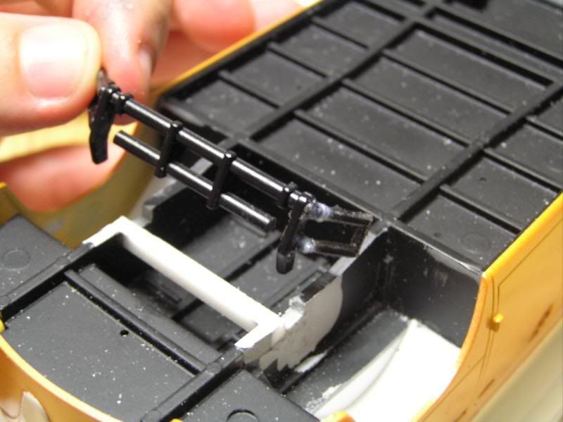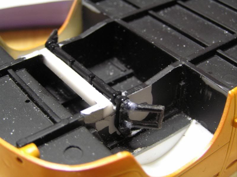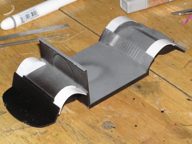 Wheel wells are easy to make, the seat also needs some material removed to fit nicely: