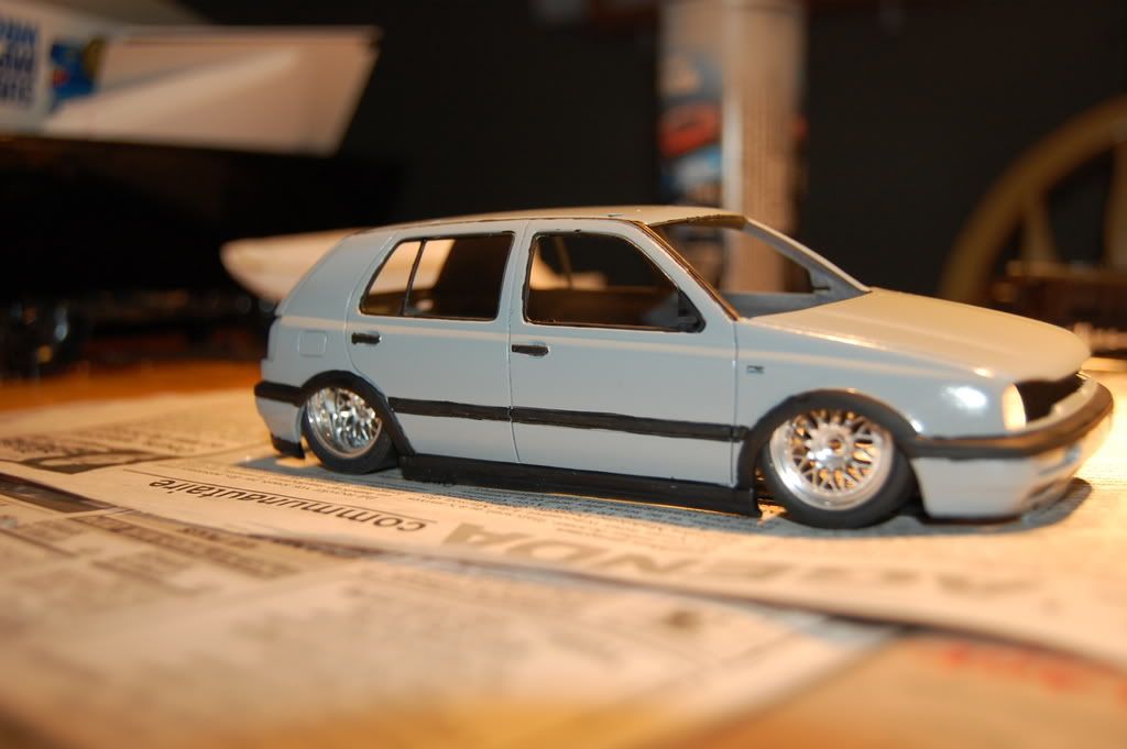 after some detailing (euro fenders, gti side skirts, textured top bumpers ect... btw it won't be that low, it's only because there's no frame yet:p)