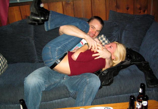 Well the thing about Chuck and the 43 yr. old *cannot contain laughter* well see my friend Chris and his brother Brad, and Ryan all work at Honey Baked Ham. That is their boss who just got divorced. Chris invited her to the party to get drunk and crap, well, she ends up hitting on any guy who would talk to her. At one point I was just shooting the shit with her and she goes to holding my hand. That is where I was like, "uh, I gotta go...get another beer!?!" With a full cup. So, Chuck, hadn't got any in a while, so I guess he took advantage of the situation, and got some experience. Some old school, I cannot emphasize old, experience. And, I have the picture to proove it! I see black mail in the future. CLick!