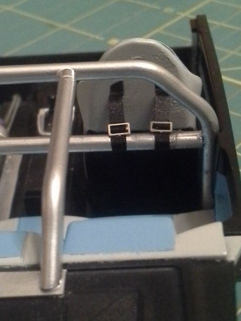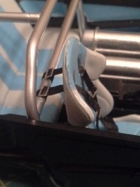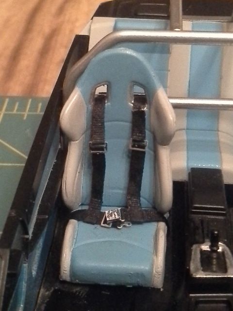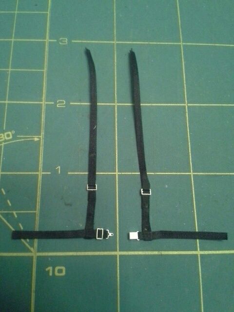 Winter here sucks....no painting for a while. I ordered a set of belts from Media Mix Hobby and they finally arrived with other sets for other kits. Anyways, I built the 4 pt style I believe is installed on the car on the movie out of a 5pt harness kit. THe webbing is 2mm silk ribbon for embroidery.