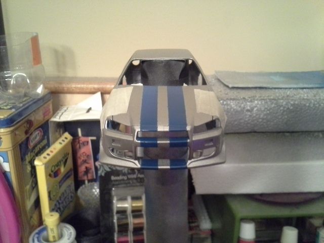 Finally a bit of warm weather to get some things done. Got the stripes masked and sprayed. Still working on printing the decals. Here's a few pics to keep anyone interested.