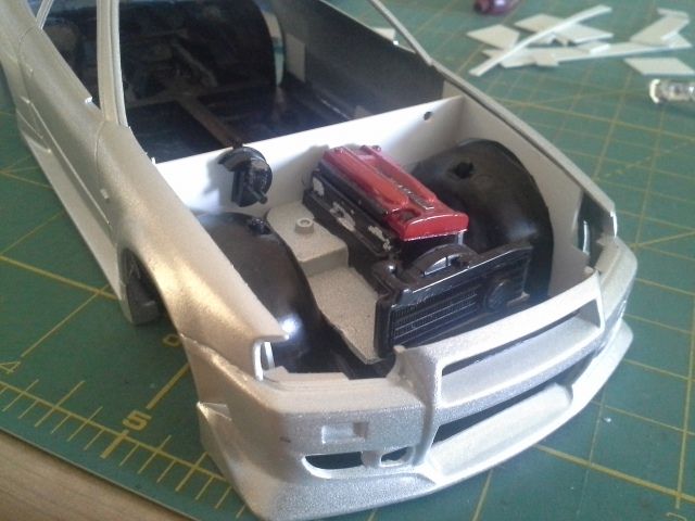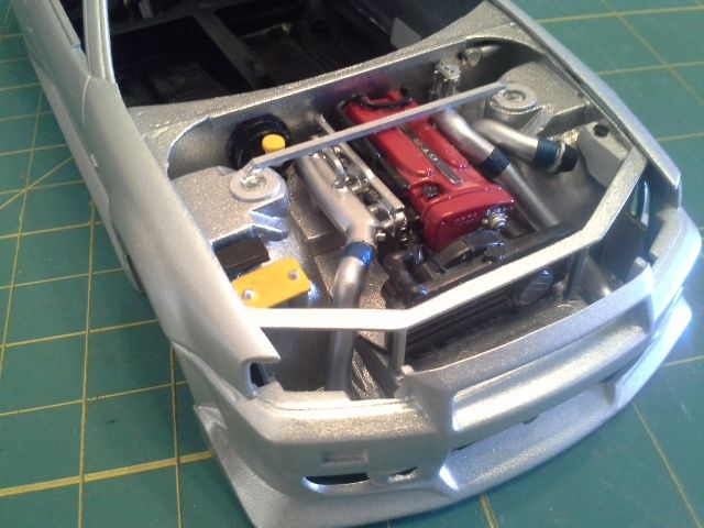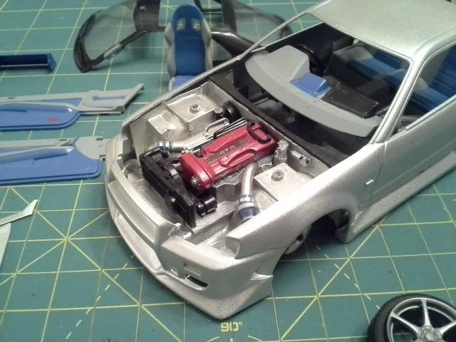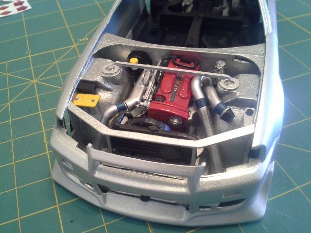 actually been looking into the Aoshima 1/24 RB26DETT (http://www.1999.co.jp/eng/10040410)Engine/ but the 2 places I can get it are discontinued. Oh, and I need to order a new body, rear bumper and side skirts. so, all exterior work will be put on hold for a bit. underside is 99% complete with new aluminum muffler and all painted. i'll get pics this weekend.. thanks again.