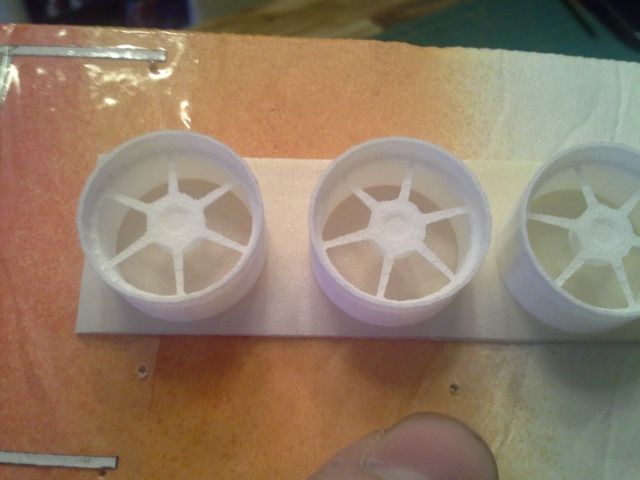 Well. I got my rims today but was kind of disappointed. I made the spokes too thin and the hub section is very fragile. I edited my file though and made notes for future designs. I'm going to try a few coats of primer then some color and see what they look like. As for size, they are perfect!! Rubber fits, the nylon bushing fits, it fits the model.... just things were too thin.