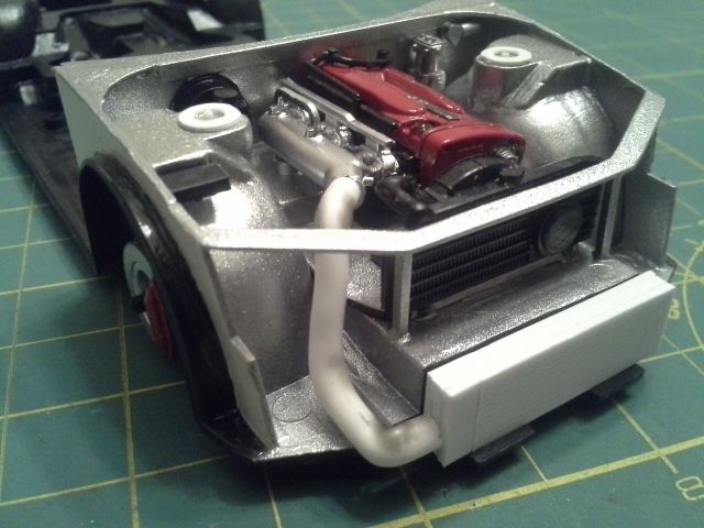 Finally some update time. Still waiting on the new body. Already chopping the engine kit up and mocking an engine bay. Heres the newest pics.