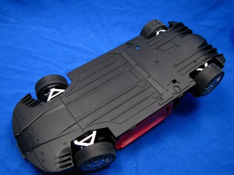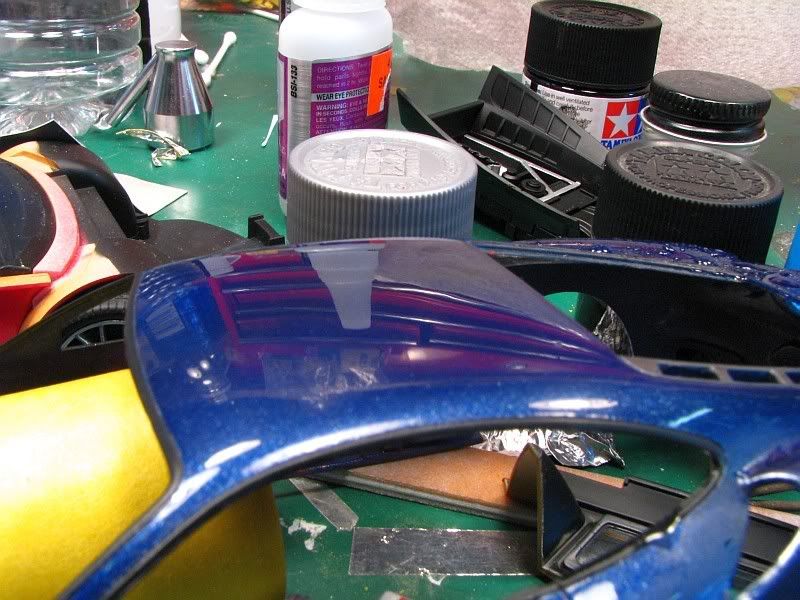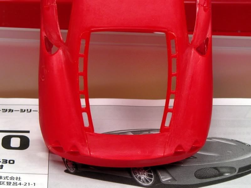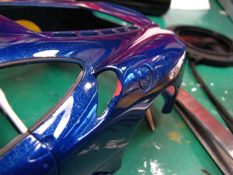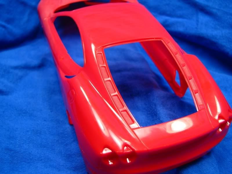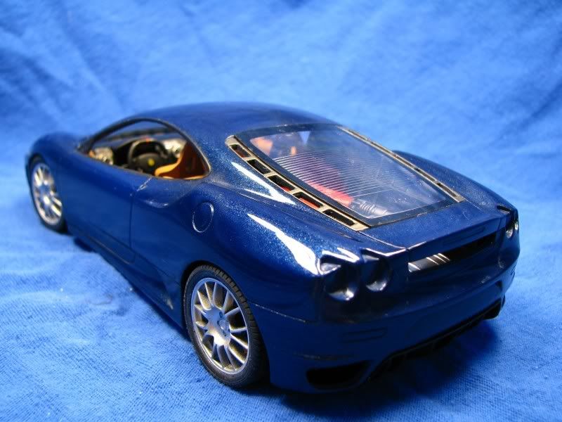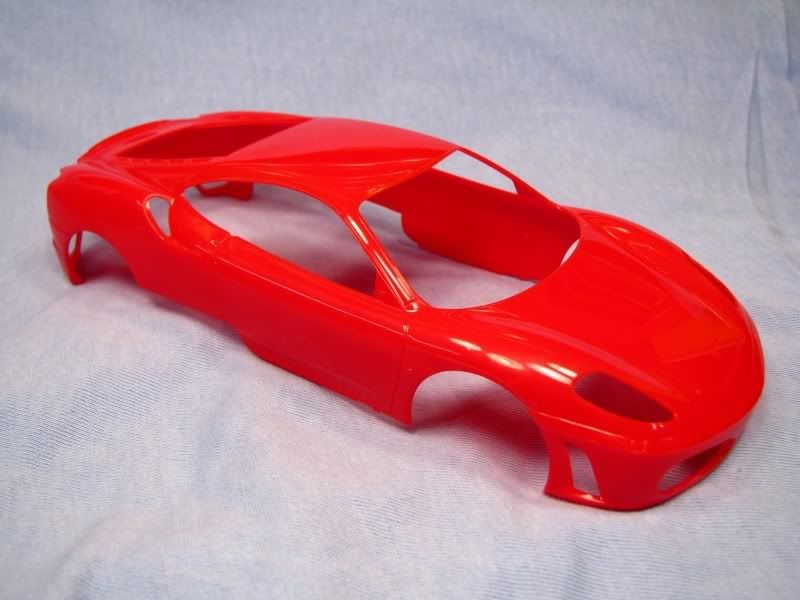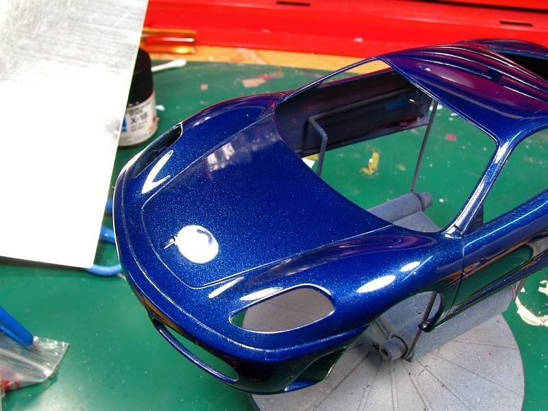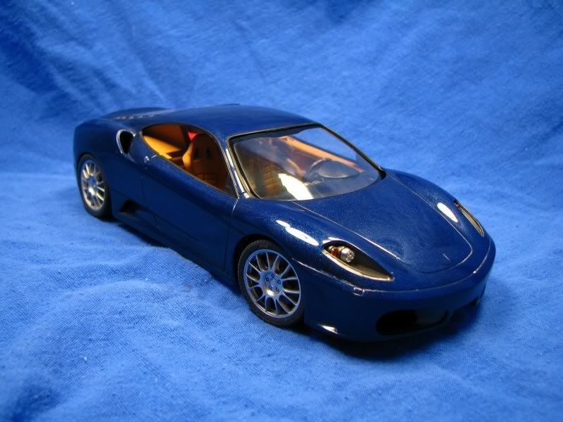 Here's another project of mine, Fujimi's rendition of the Ferrari F430. I'm building the option parts version, which means BBS rims and special seats are included. The body, where I always start, looked good except for the molded-in mesh for the engine compartment, which I removed. The body was then primed and painted Tour de France blue from Zero paints, followed by six coats of Zero clear. I then polished the paint with 3M rubbing compound.