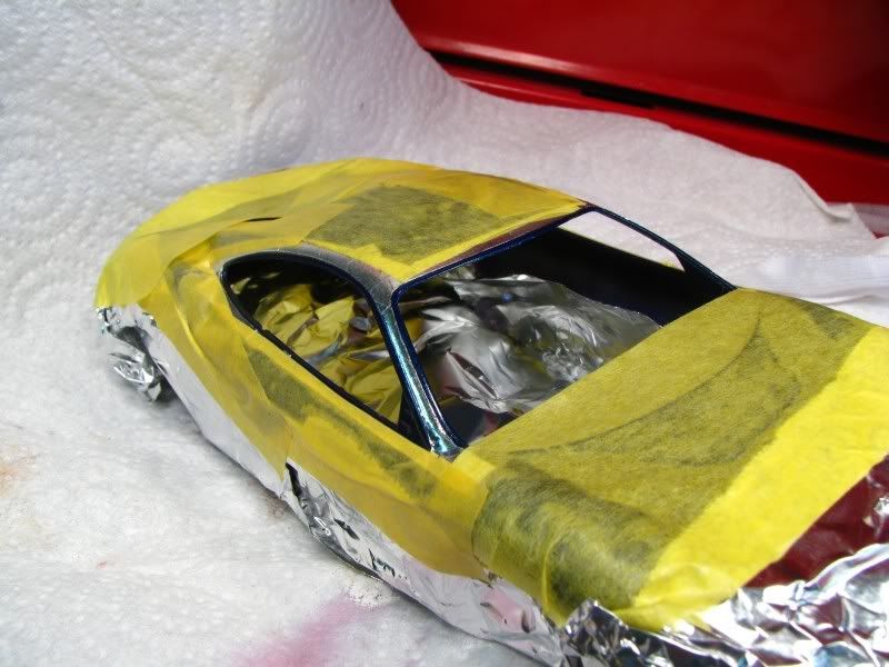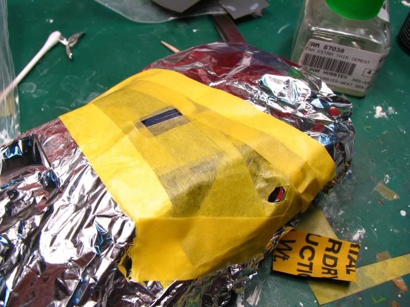 I decided to mask off the trim with BMF, tamiya tape and aluminum foil and spray the window trim.