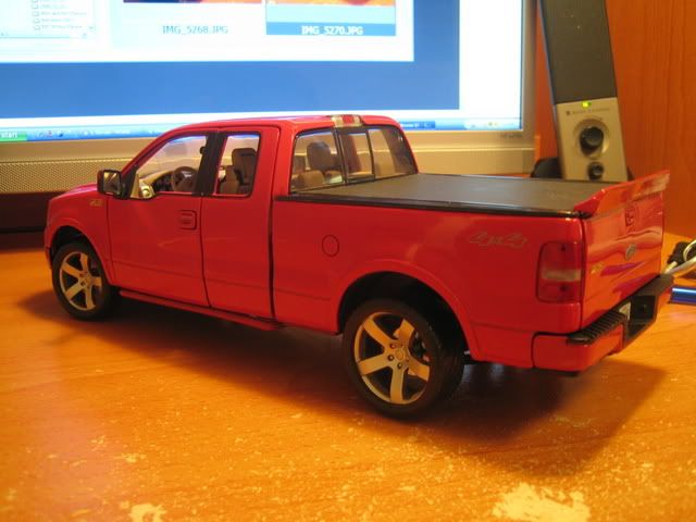 I'm really glad you guys like it =] as for the viper engine, i decided it would b too much of a hssle to make it fit and not very practical for a everyday truck. I want this truck to replicate sporty everyday use. I've added a small spoiler on the tailgate and painted the top part of the side mirror red.