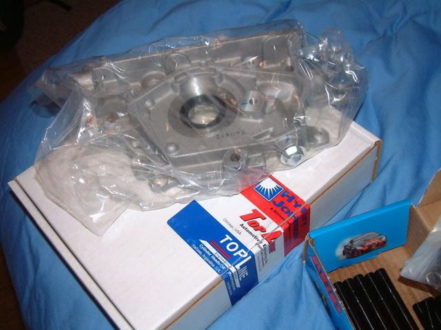Here is a pic of the ARP heatstuds and the new oil pump. Timing belt should be in this week too. This weekend Im planning on tearing the oil pump and crank off the used block. Maybe I can get it sandblasted this weekend also. I will have to check on that. Then maybe in the next two weeks I can get the block and crank to the machine shop. I only need a few more parts, most of them will be ordered in the next week or so. These are the parts I still need.