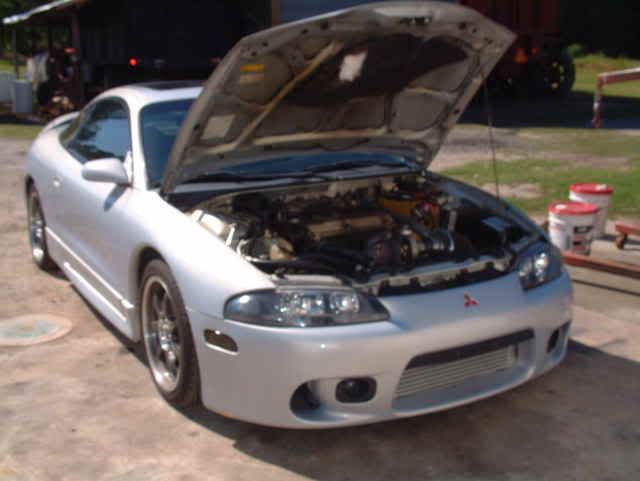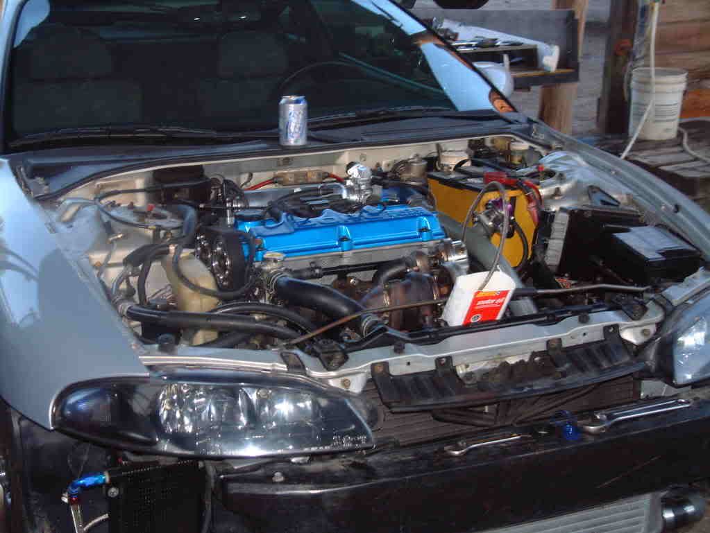 Friday night I got the motor ready to drop in, set the timing, installed the clutch and all that good stuff. Saturday about 1 we started to put it in the car, didn't take as long as expected and by about 8 that night the motor got to run. It started right up and was a little ruff but we lowered the fuel pressure for the bigger injectors and it smoothed out. Let the car run for about 30 min and shut it off to let it cool back down.
