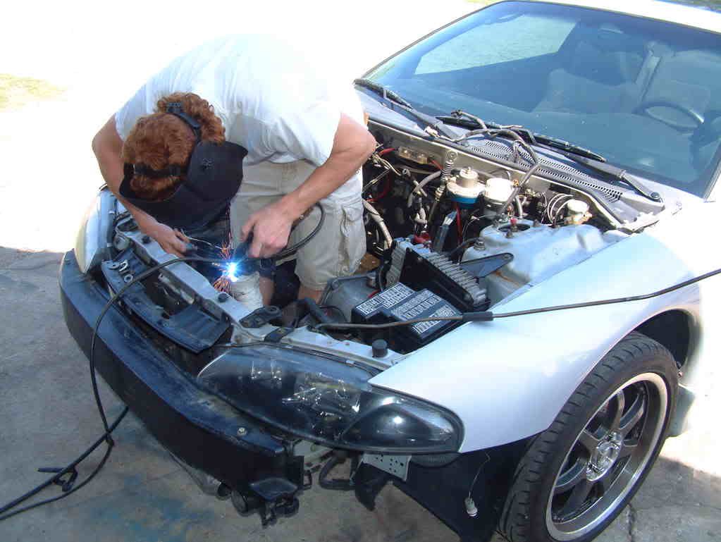 My friend welding the exhaust back together.