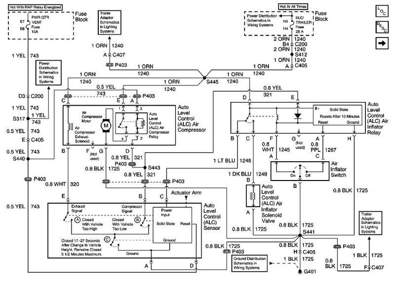 As the vehicle load decreases, the vehicle body raises, causing the automatic level control sensor arm to rotate downward. If the body raises enough so that the sensor arm rotates below the in-trim zone, the automatic level control sensor activates the internal timing circuit. If the vehicle maintains this condition for more than the minimum delay of 17-27 seconds, the automatic level control sensor completes the exhaust solenoid circuit ground. When the exhaust solenoid circuit energizes, compressed air exhausts from the shocks, through the airliners, air dryer, exhaust solenoid and automatic level control air compressor filter. The vehicle body then begins to lower.