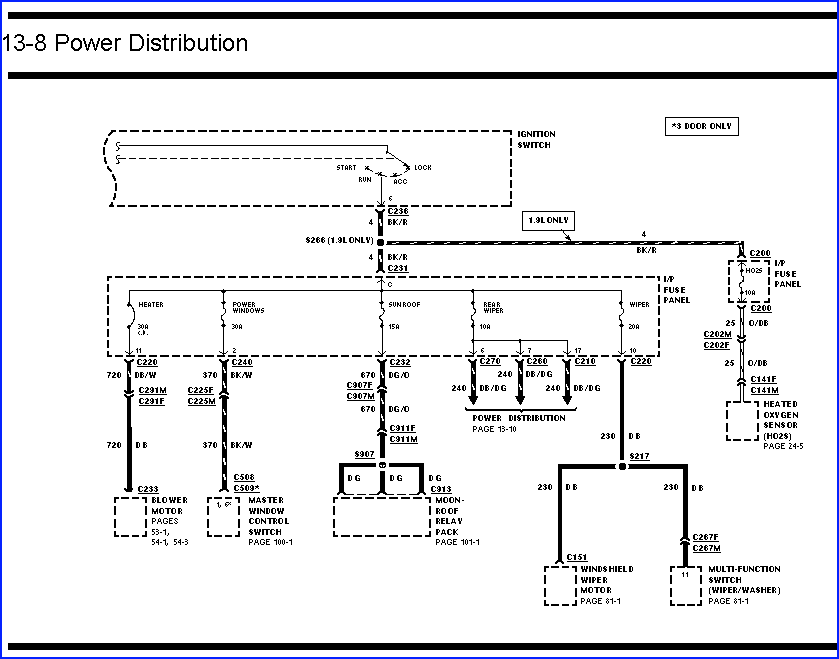 If you look at the diagram below, you can see that the black/red wire from the ignition switch routes into the interior fuse panel, feeding the front wipers and rear wiper, in addition to the heater blower motor and power windows. If the ignition switch was faulty and not feeding that wire, or if the wire itself was faulty, then your wipers would be out of action. If your wipers work then you know that the path as far as the fuse panel is intact.