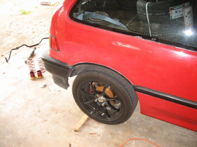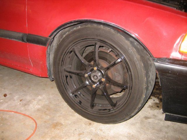 So I ran an autocross today with the new springs on. They have settled even more than yesterday and now I am truly tucking into the fender. This is more than I wanted and so to remedy this for the time being I am switching the front and rear springs. The rears can still be raised about another inch and already have the gap I want, so I figure the 1" shorter springs should even things out just right. Ill just have to buy new ones for the fronts eventually if I feel a need for something stiffer than 200lb.