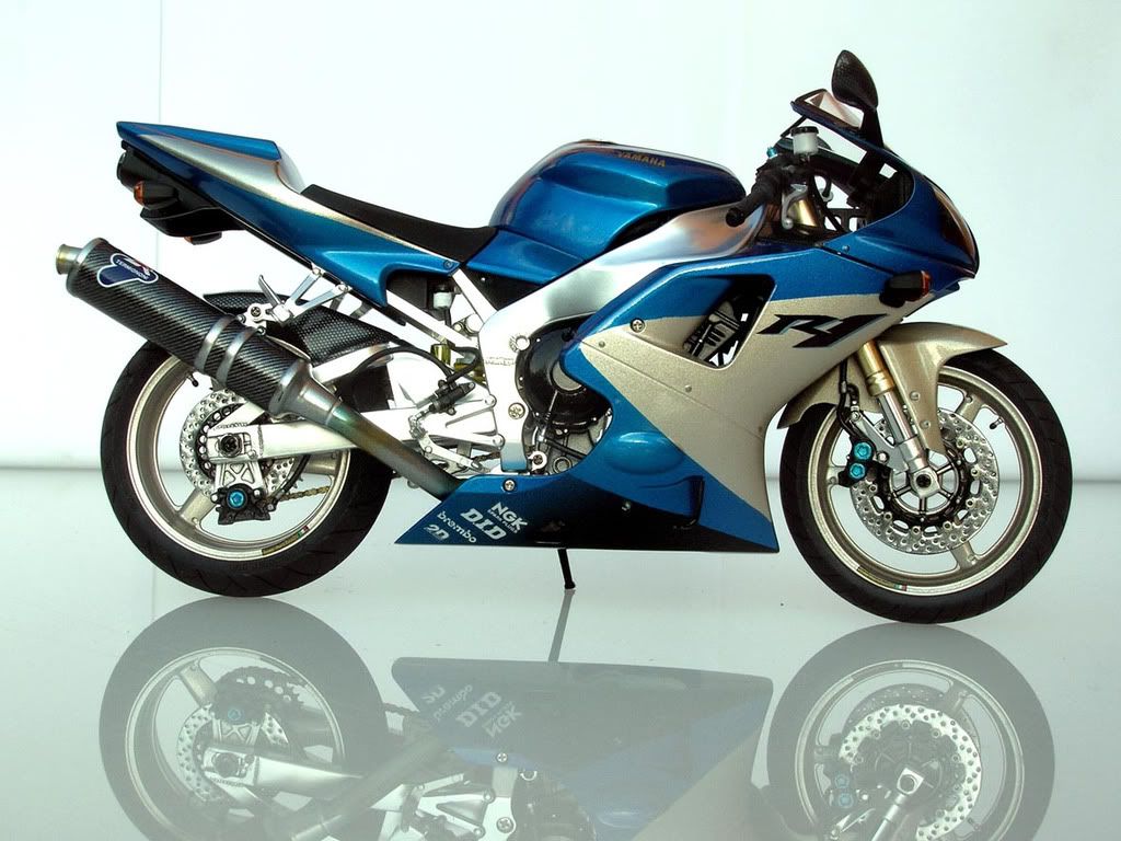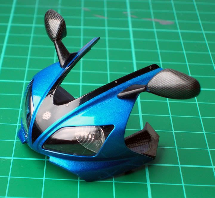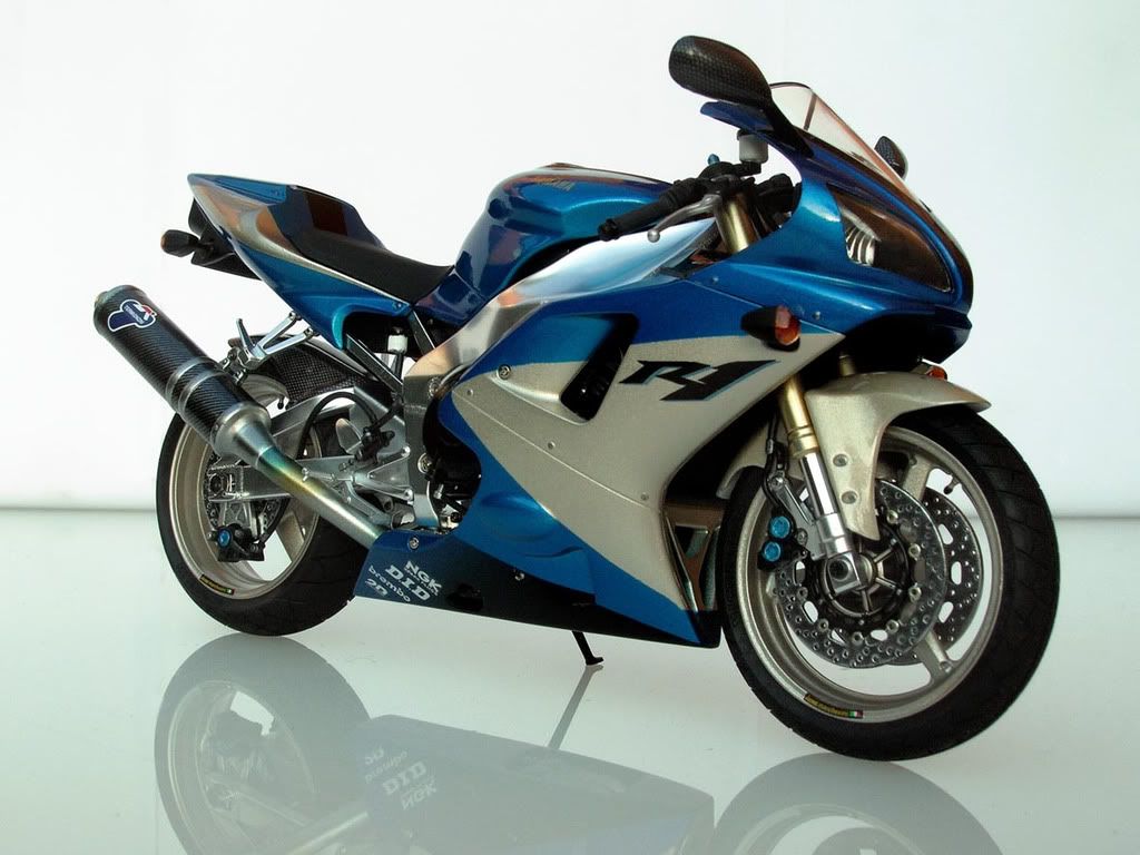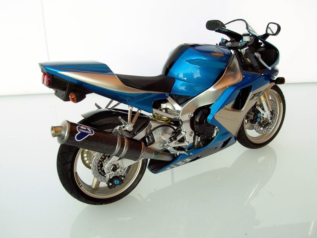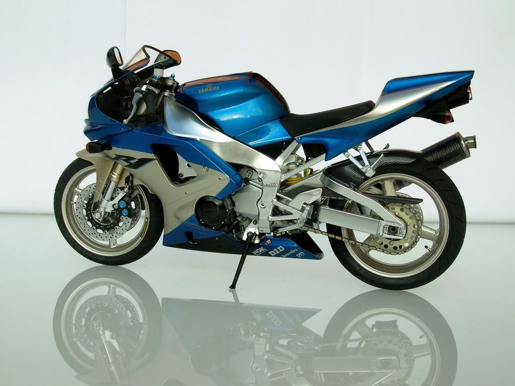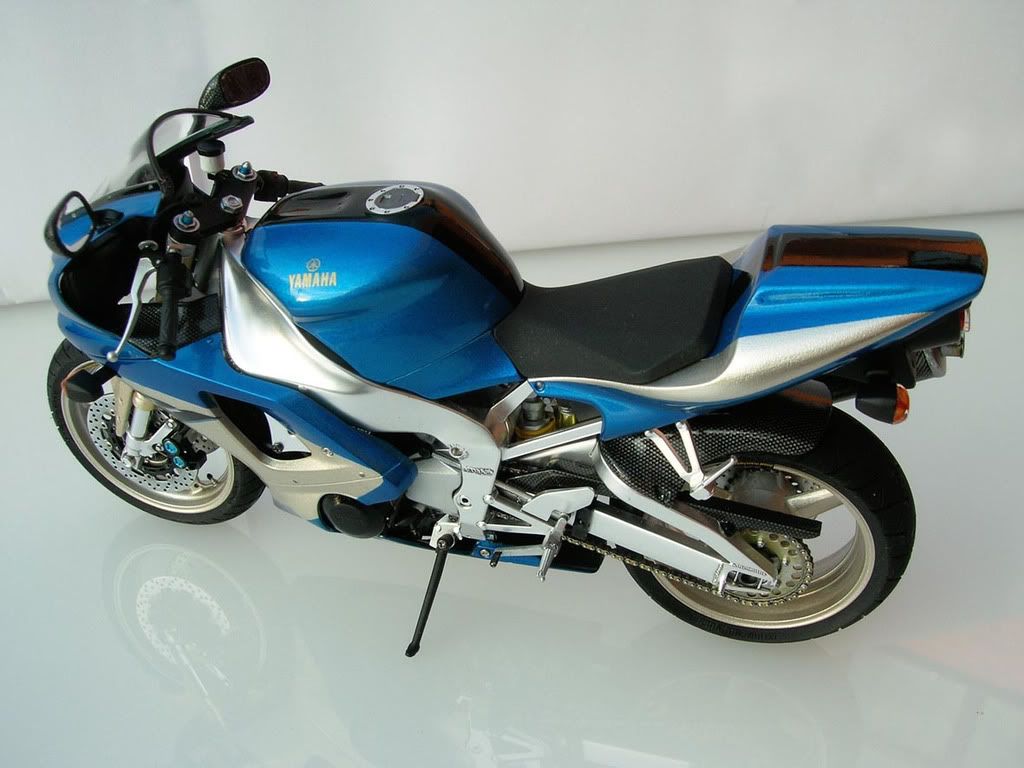 Hi Guys, I had the Tamiya Yamaha Taira Racing kit waiting to build, i thought just painting it silver was a bit boring so I have decided to do a bit of a custom paint scheme, loosly based on some of the more recent R1 bike paint jobs. I choose zero paints Gulf metallic blue, champagne silver and black for the main colours. Any feedback welcome.