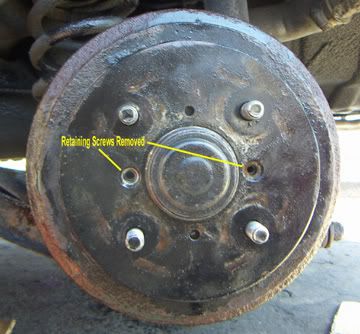 Thanks for the replies...My car does Not have ABS. I've posted a picture below of the drum with the retaining screws removed.