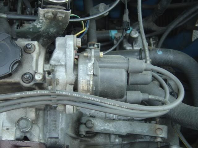 For reference, Here's 2 pics of the "Correct" position and mounting of a 94 Geo Metro 3 Cyl Distributor when the timing is set to factory specs, and the timing belt is new.