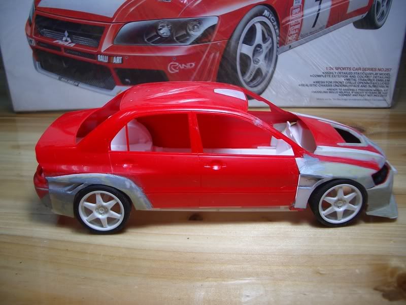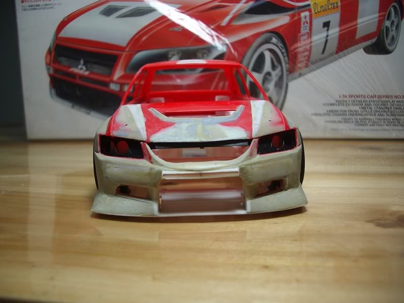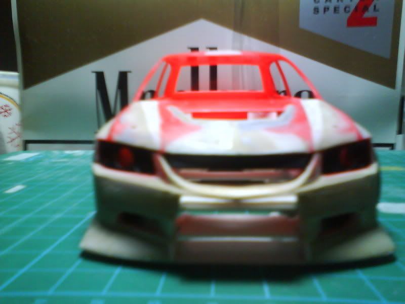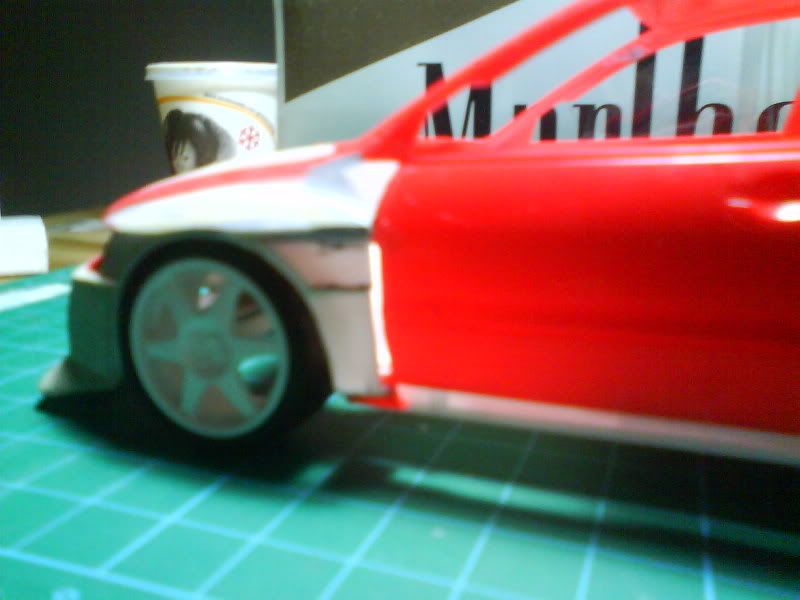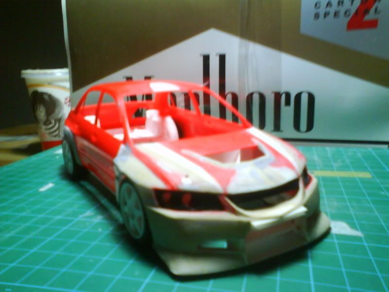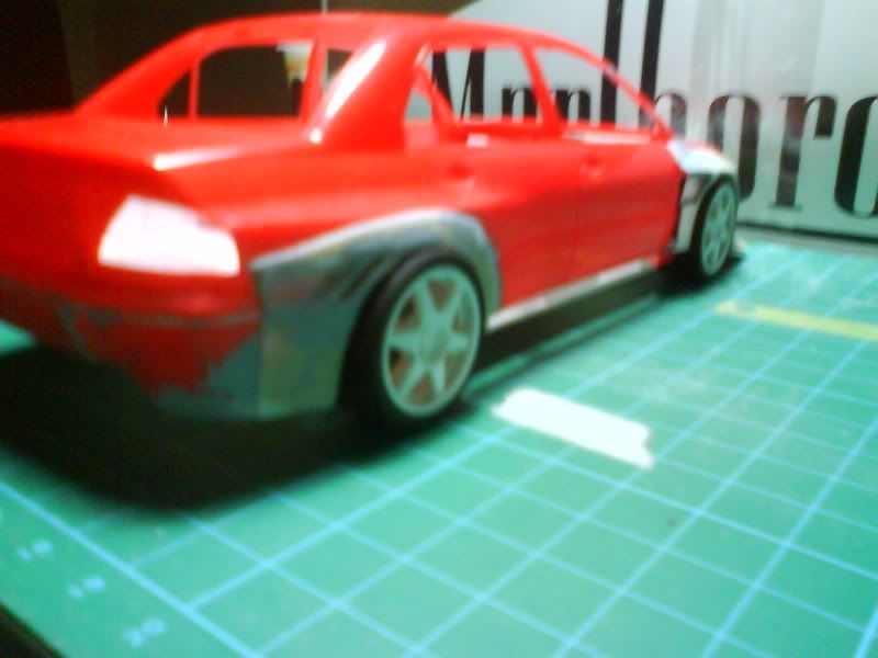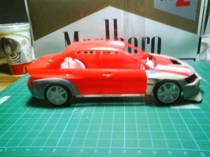 I have been messing around with my tamiya evo7 kit. Been looking at a lot of tuned evo car and have finally decided to redone the kit as "SUN AUTO CYBER EVO." One of fastest car ard the track of tsubaka. :naughty: Being messing ard with it for 3 mths or so. Here are some of the pics.