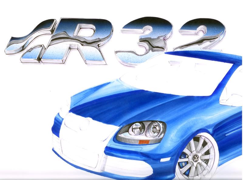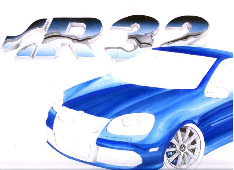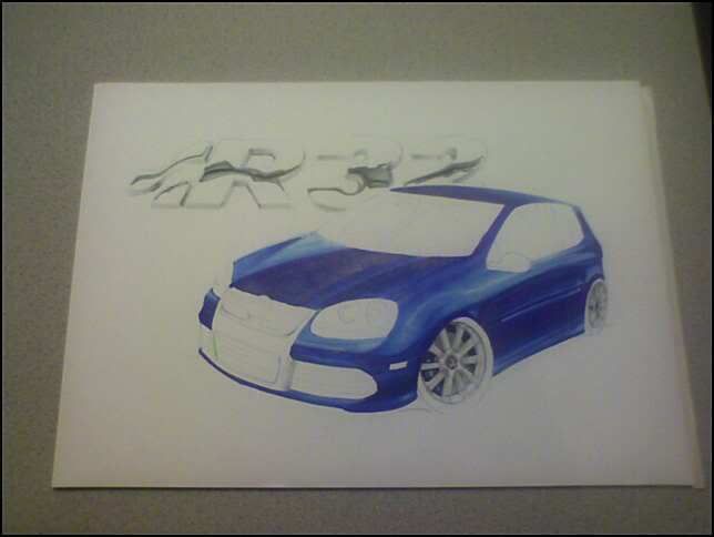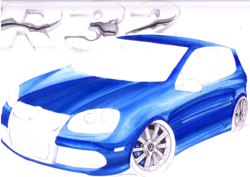 started to work on this new VW Golf R32 and wasn't going to try to do a WIP because my paper is a little too big for the scanners I have access to. I take all my finished pieces somewhere to get a larger, super hi-res scan done. But I know how I enjoy seeing some of the WsIP on here, so I thought it was only fair to try and share mine as well. the first is a not-so-great cell phone pic, the second is what I could manage on the scanner here at work.