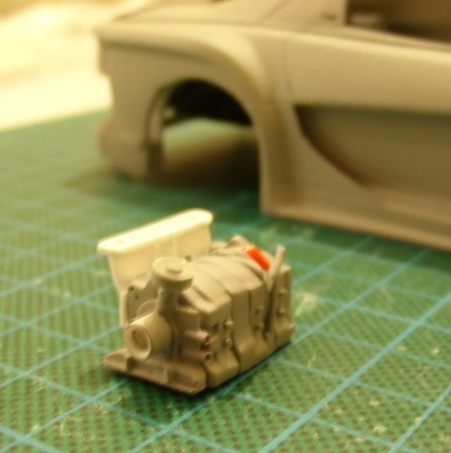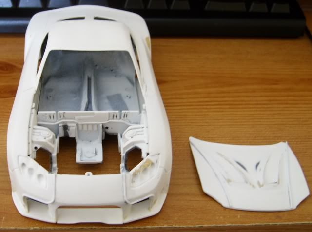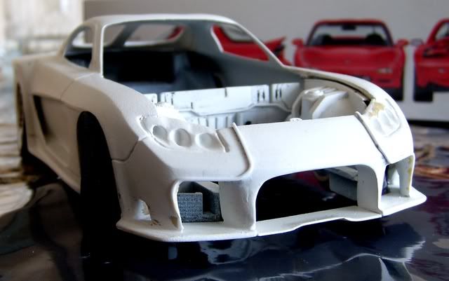Sweet, when i first saw that car from behind i couldn't tell what it was, until i saw the front headlights. Progress looks promising, keep us posted. Any engine pics yet? Also what kit is this tamiya, fujimi, or aoshima?