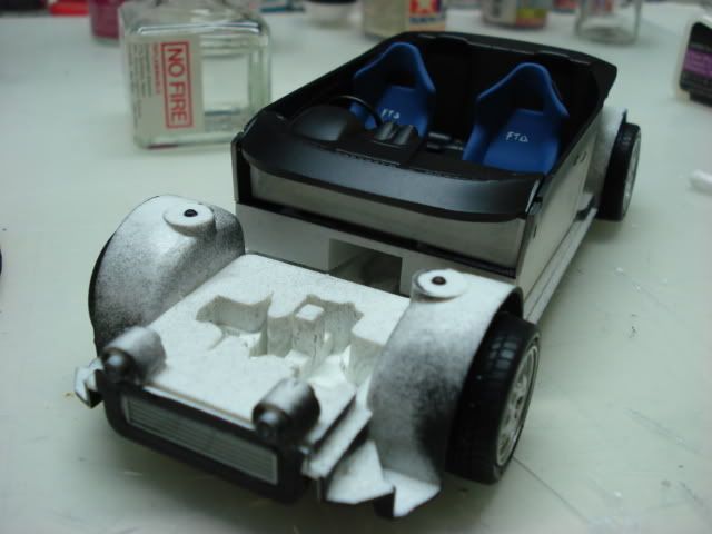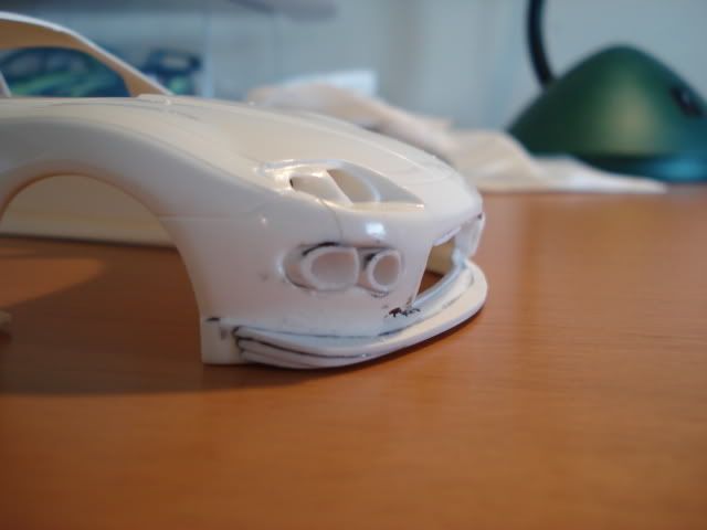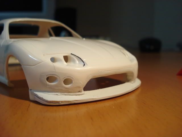 Just wanted to say you've done a fantastic job on the front bumper. I really wish I could work with putty like you do. It now looks a lot better. Also, do you mean that the rear wing was scratch built? Fits the car very well! Can't wait to see more and what wheels you might choose.