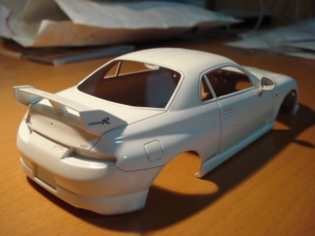 I have better luck this time with the polishing. Eventhough one decal on the spoiler came off while polishing (again), it was easy to put on a new piece and clear coat that side again since I made some more better decals. Now I have like 50 'version R' decals sitting around!
