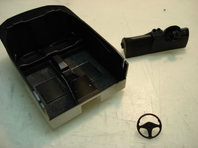 Interior tub, I put on the floor carpet. The original shift knob was so poorly made I machined a new piece with aluminum. "MOMO" steering wheel off the fujimi evo kit. I have an endless source of these wheels since I bought quite a few fujimi evo series and each one comes with 3 wheels to choose from.