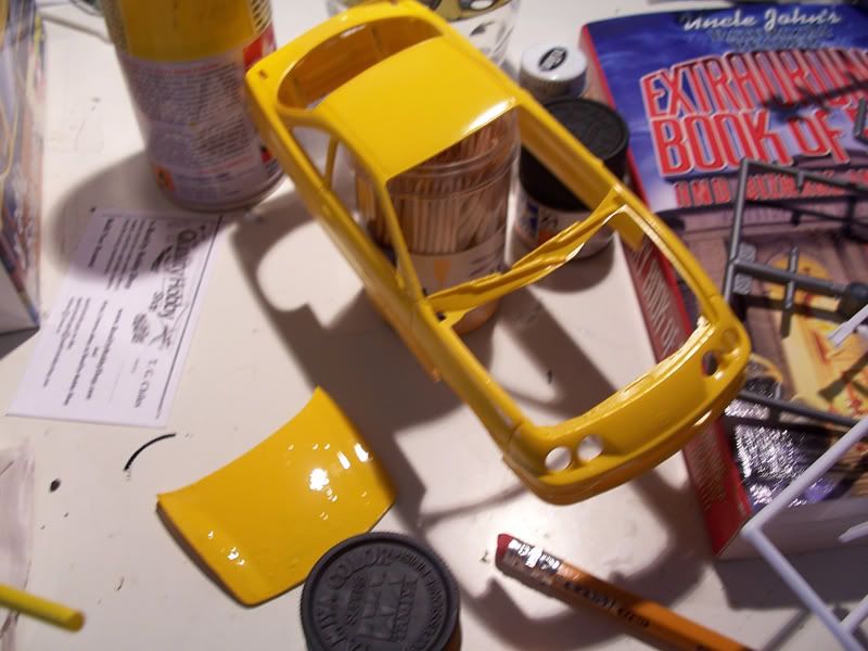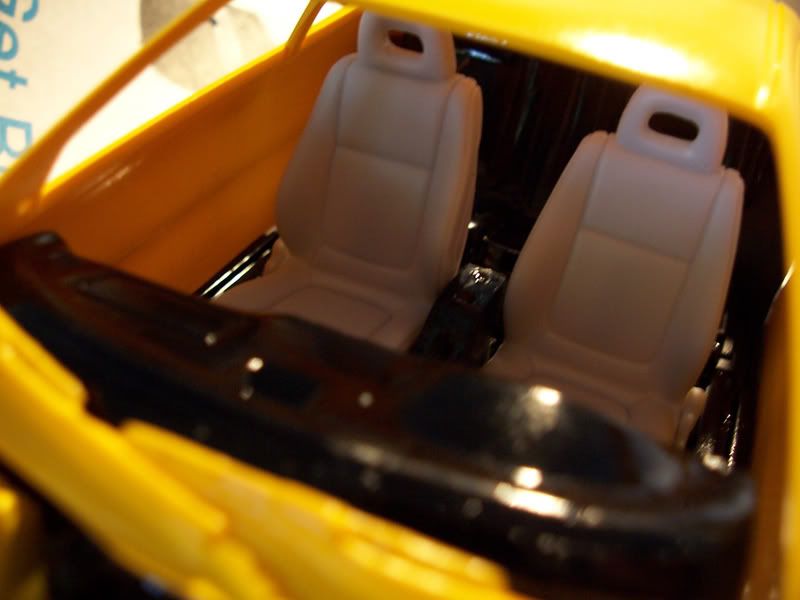 Seats are still white because I ran out of Black paint (using X-1). I had problems with hood spray painting, and I stripped it it, then repainted, but it is pretty glossy. I've run out of paint and I don't want to buy another $10 spray can.