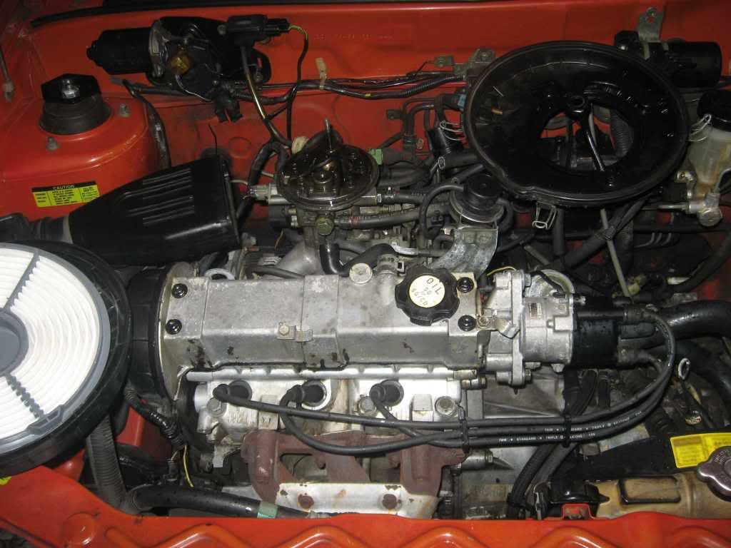 First thing I have to do is figure out if this is a fuel injected or carbureted motor. It is a 1991 and here are a couple of pictures of the motor. I think that's a carburetor behind the valve cover. Does that mean this motor's been swapped or did they build some non injected Metro's in 91?