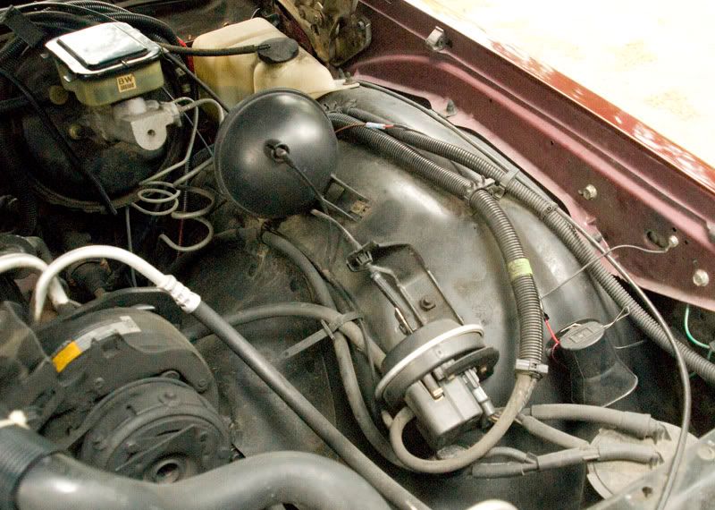 Now that i look at your pics i'm not sure if mine will be much help because my cruise control thing looks different. Mine mounts right on the engine directly in line with the throttle. Yours looks like it mounts on the firewall somewhere not too far. So what i'd do is hook up the throttle linkage and then just move the vacuum module around wherever it reaches and you'll have to look for the bolt hole. But i'll put the pics up anyway.