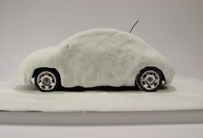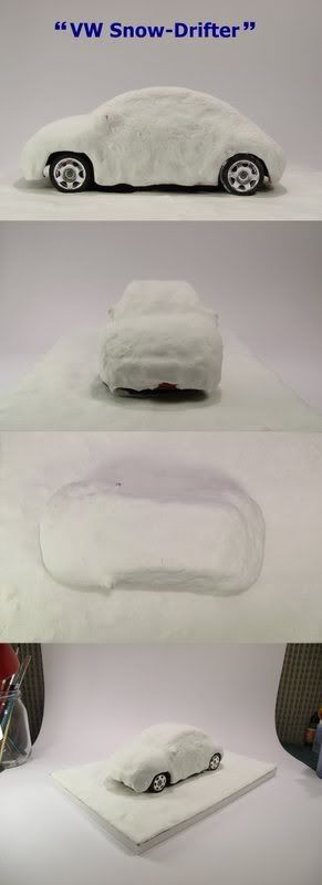 My idea was to have a scene where there is essentially 100% snow (I know you can see the wheels :p ) but still let the car be recognizable due to its distinctive shape. That is why I selected a Tamiya beetle for the job - cheap, easy kit and still looks like a Beetle :)