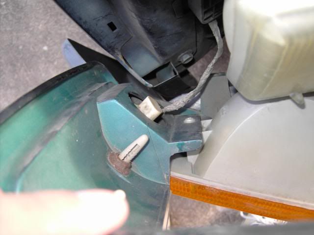 I got ahead of myself and forgot to mention that you also need to remove the lightbulb. All you need to do is 1/4 counter clockwise turn and the light bulb should come out. The hardest part is to avoid breaking the connector to the light bulb. years of wear turn the plastic brittle. Mine broke at the clip at both sides but I just bought some heat resisting tape at the autopart store and my lights work fine. By the way, my replacement headlight assemblies came with new bulbs so I wasn't too worried about keeping the bulbs clean.