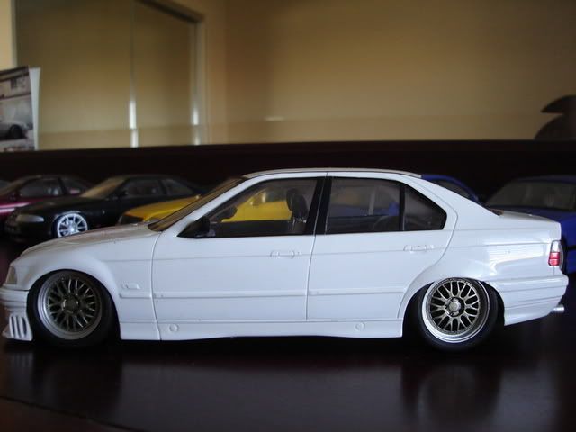 The white car is a dragon E36 touring car that I made into a street car. It sits on BBS LM's with a low drop and lots of camber.