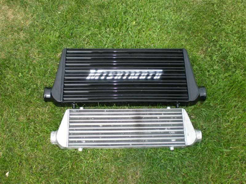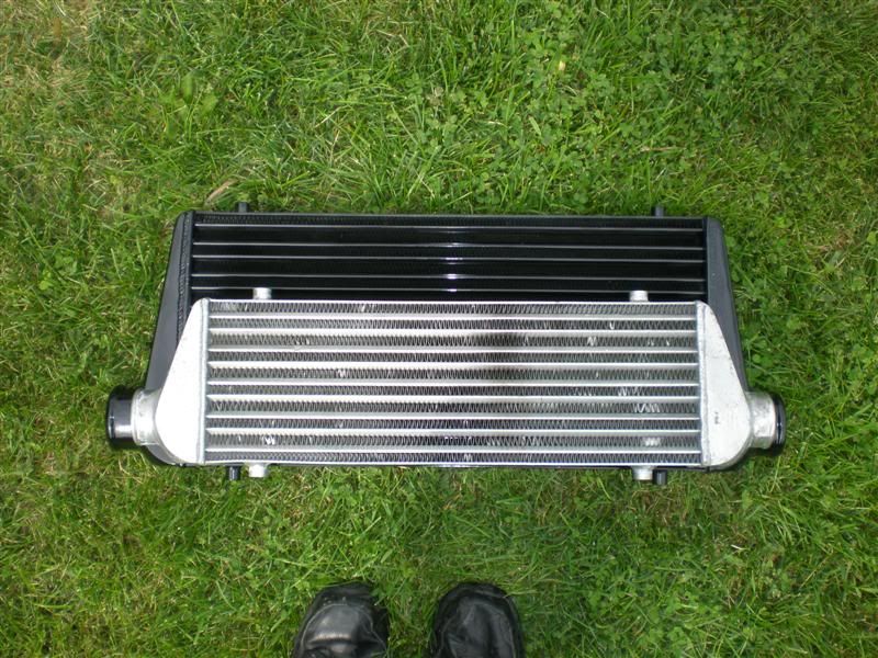 The previous one was some ebay brand "JDMSport." Figured it'd get maxed out kind of quick. Old was only a 2.5" core in/out, new one is 3". When I installed the small one after the motor swap, I used brackets that I could just bend and reuse for a bigger FMIC, and it worked great.