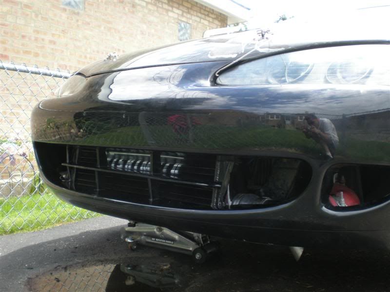 All bolted up and installed. Had a lot of trimming to do on the bumper and just a little on the crash bumper. Had a lot of problem trying to get the bumper back on, punch the fender (the good one on the driverside) and dented the shit out of it.