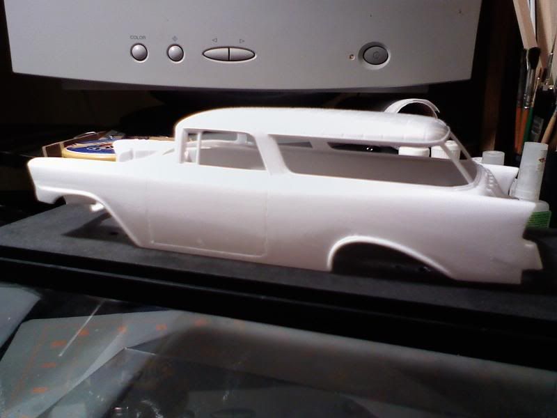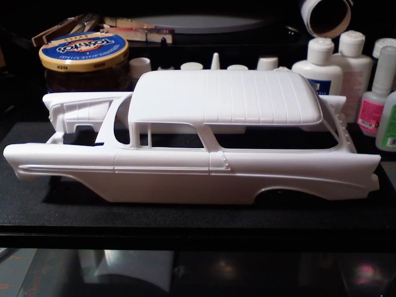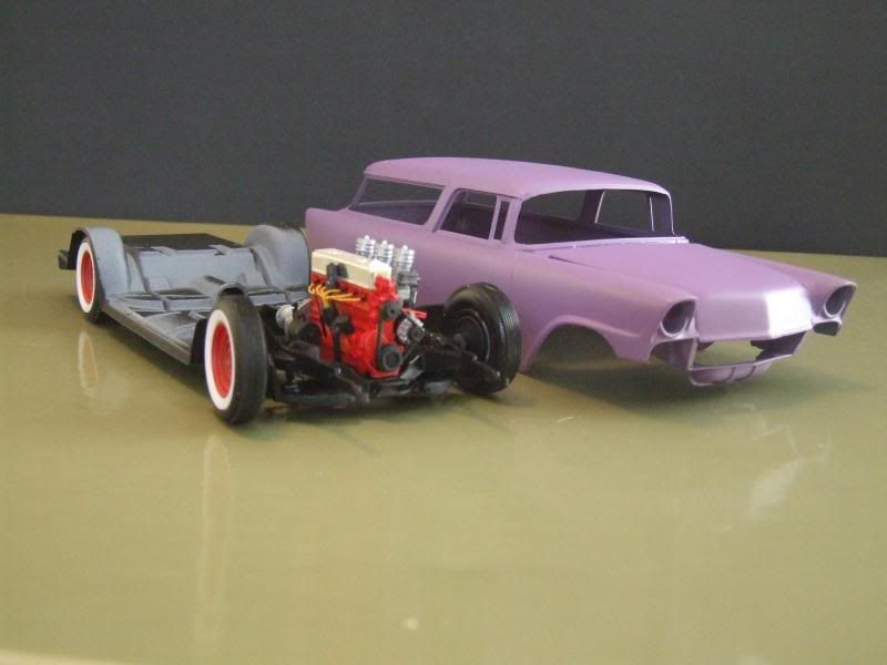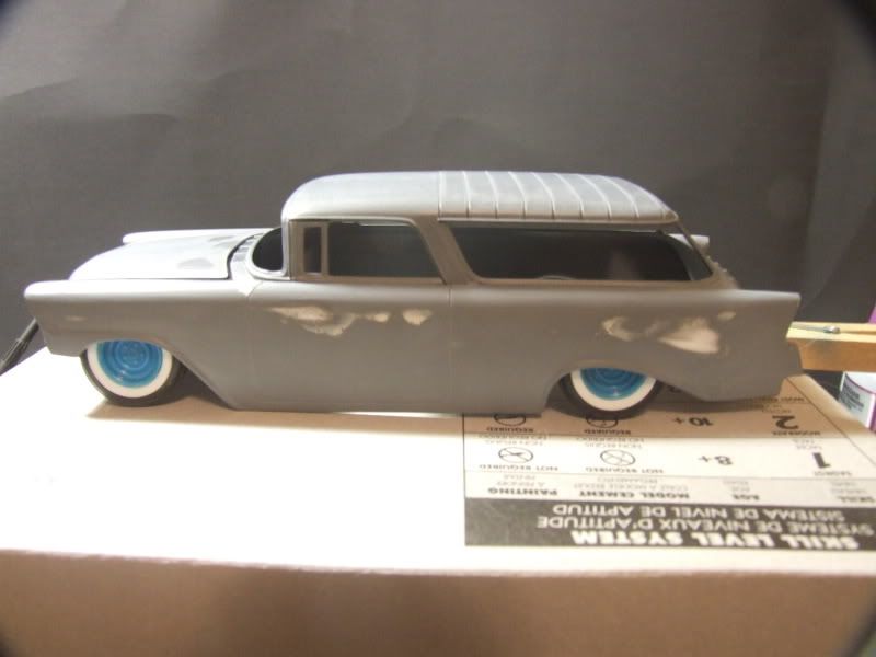 Well, after about two years of not building anything, I've started a new project. Revell's 1956 Chevy Nomad. It'll be a mild custom, shaved the trim, different motor and different wheels and tires.