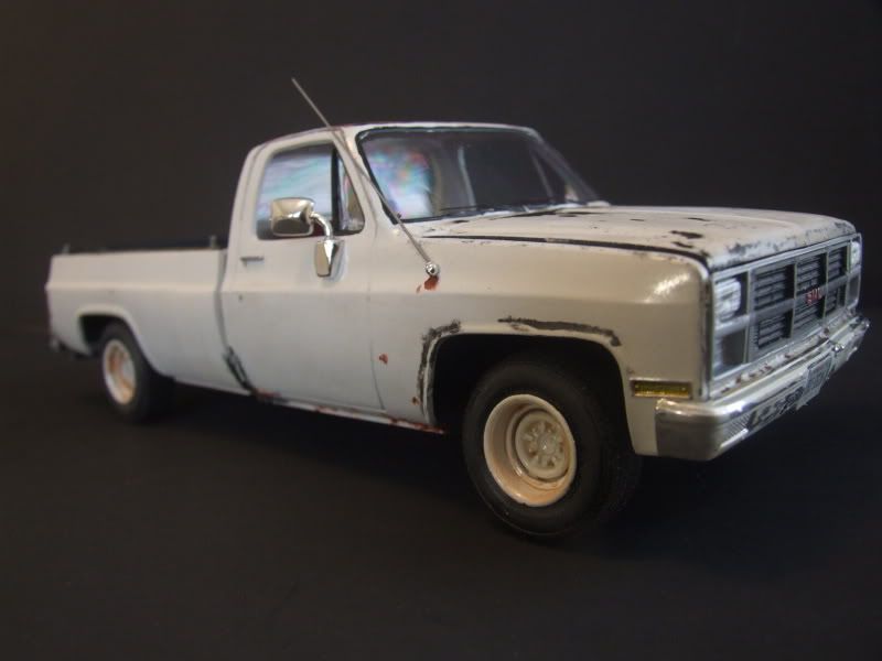 Finally finished with the pickup. Here are the last wip pics and the finished model. Actually it's 99% done. Still waiting for the sierra and gmc decals for the wheel caps. Yes, his truck is that dirty... it's a wip too.