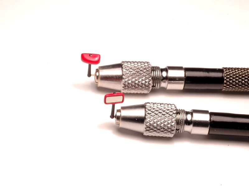 The wing elements are all fixed to the endplates with epoxy glue and metal rivets as locator pins and for added strength. I reshaped the heads, drilled little holes and painted them where necessary.