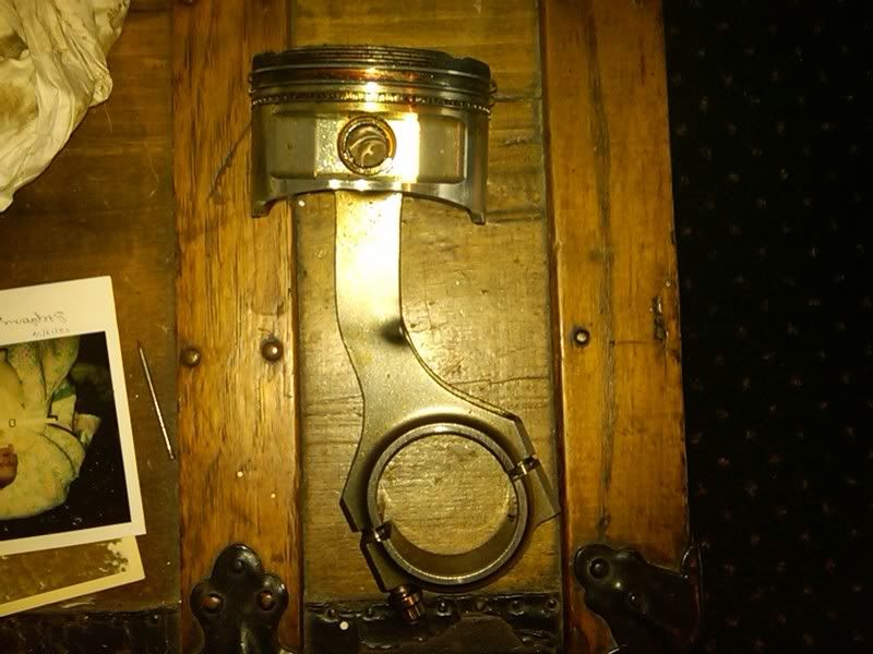 Havin a little trouble with the wrist pin right now install the new rod. Should be alright, i dont think the piston is messed up. Well Im hoping its not..