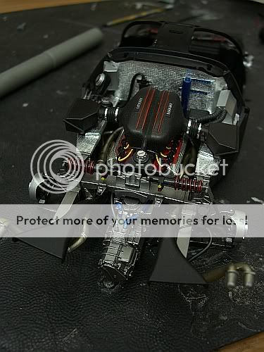 The black paint looks slick, Im with ya... there are way to many red. Love the engine also!