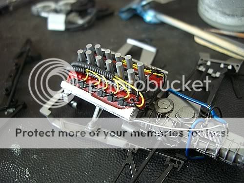 engine are completed.... added more wires....and for the blue tube... i used 1,5mm tube and paint it with silver then clear blue.....