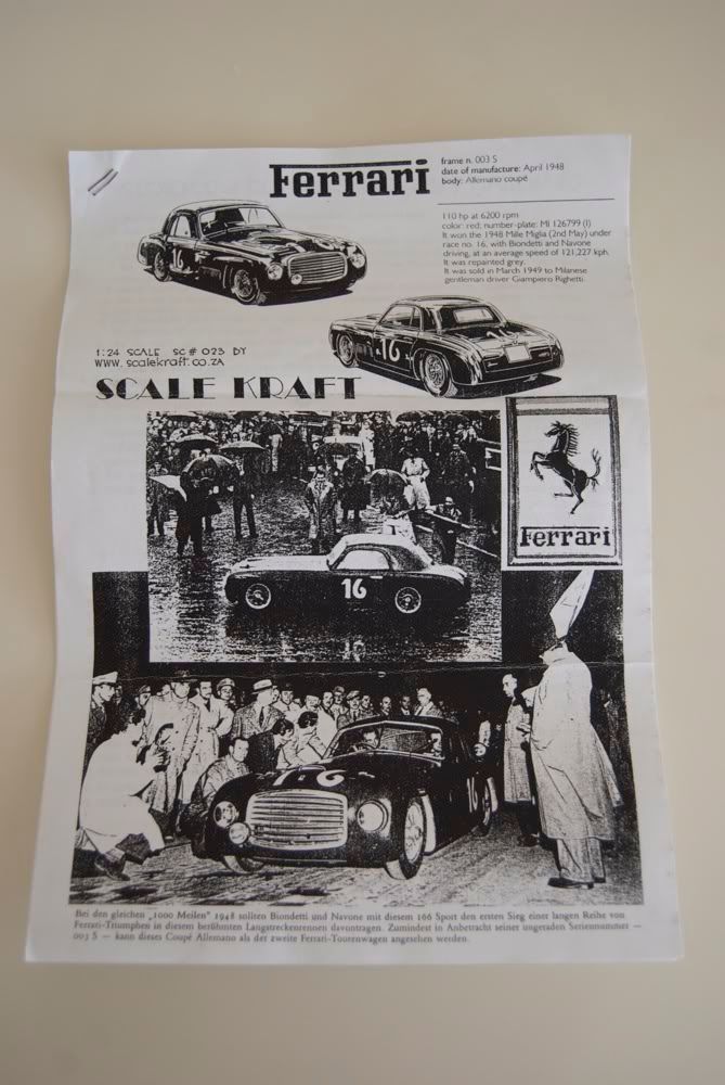 Today we going to look at one of the early Ferrari kits that SK released (SK23) - Ferrari 166 Allemano Coupe.