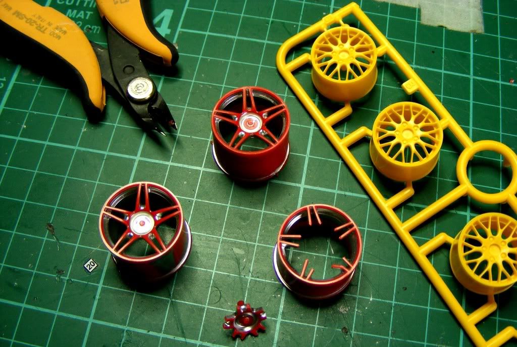 I love the wheels! I am so going to do the same thing, then cast them in resin and use them on every model I ever build again. Those wheels look great!