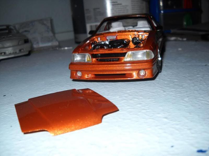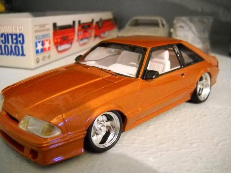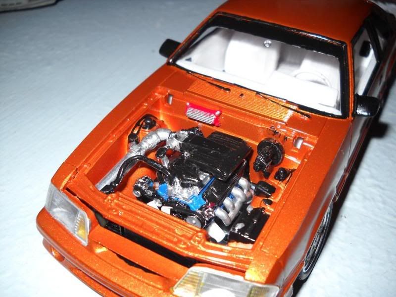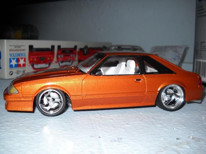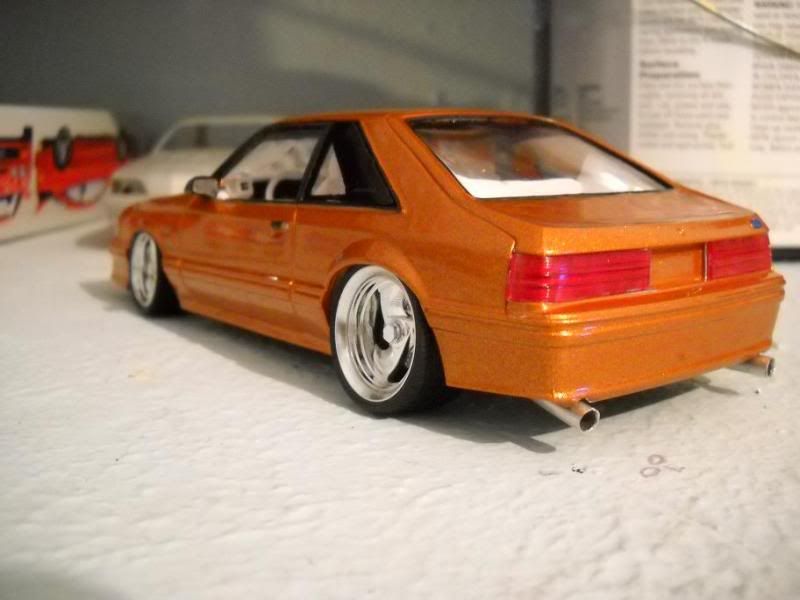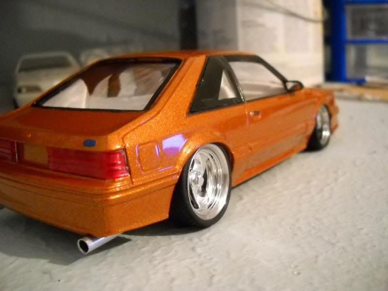 This is the revell kit with pegasus wheels, aluminum exhaust tips, air intake. Paint is Testors laquer orange with acrylic urethane clear. The window trim is a bit iffy as i did it free hand. The ignition is a resin part i made copy's of from another kit. The breaks are from xs tuning, i also left the body wingless,i just think it looks better. Hope you enjoy.