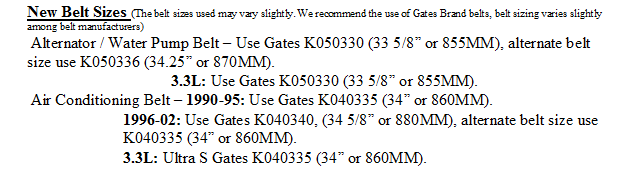This shouldn't have been a problem because they included the new belt sizes but it was really confusing what I needed. The P/S and Alt. run off one belt and the A/C runs of it's own belt. Here's what they sent with it
