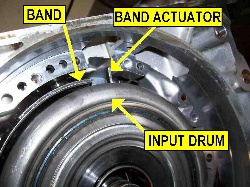 Incidentally, your trans has only one band, and it is used to clamp the input drum into position and force the input shaft to drive through the planetary gearset rather than directly, providing the necessary reduction ratios for the Reverse and Low ranges.