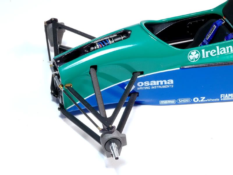 The front damper received some additional bits for detailing and to hold it in place. It’s a bit tight around it and I doubt in reality it would have much of a chance to move, but it looks like serious business :-)